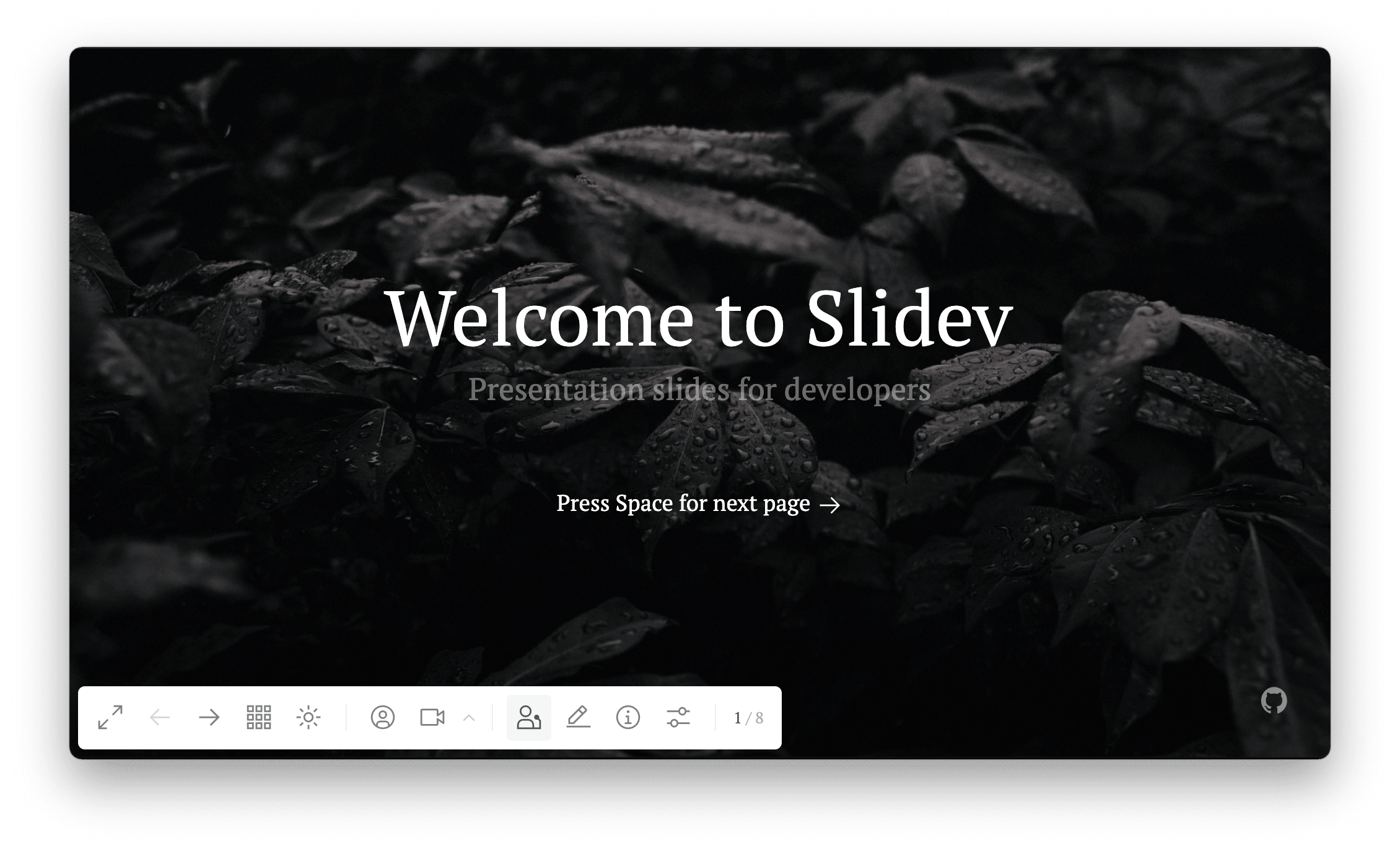 To enter the presenter mode, you can click the button in the navigation panel, or visit http://localhost:<port>/presenter